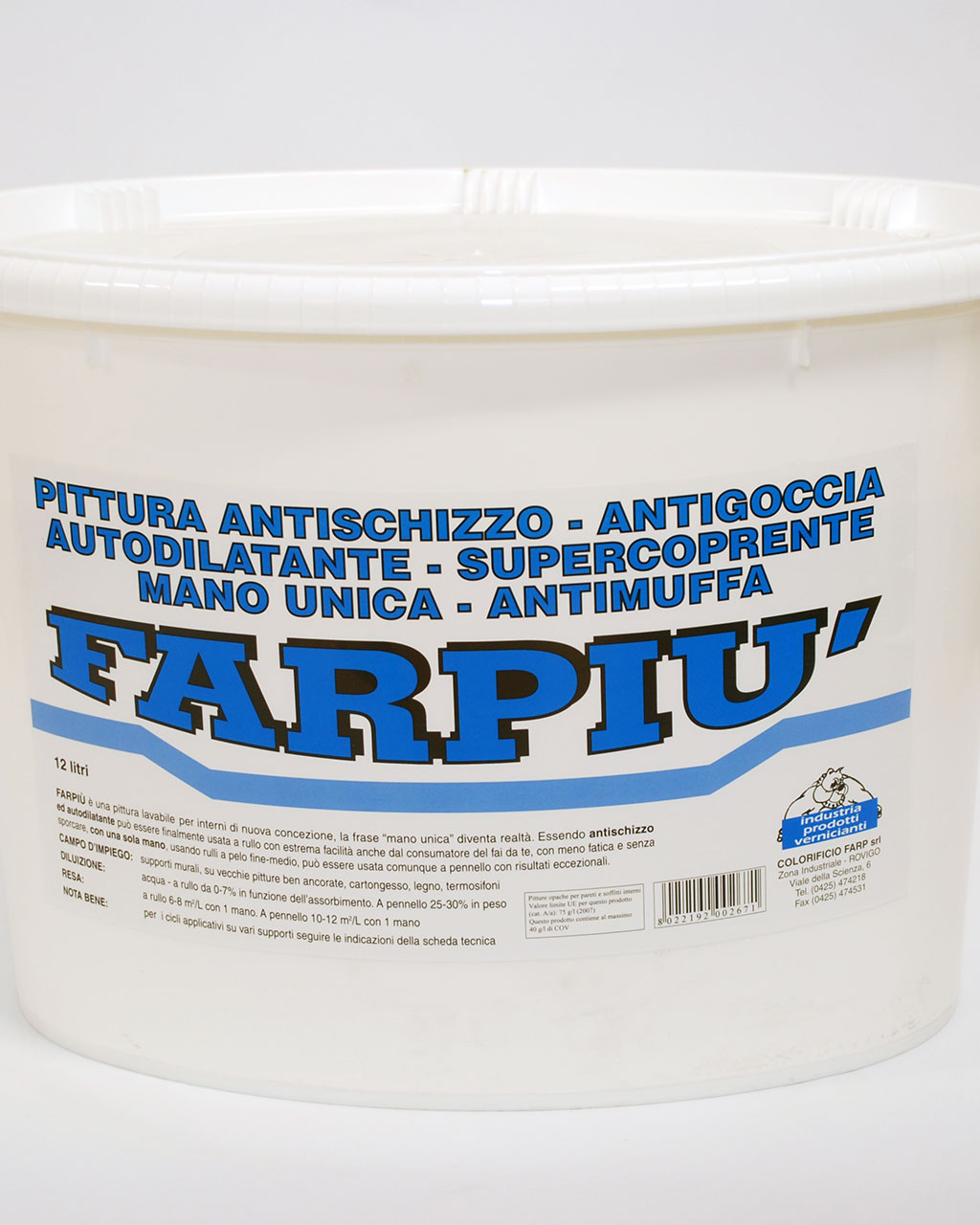 Con Farpiù la “mano unica” non è più un sogno ma diventa realtà a portata di tutti. Farpiù è pronta all’uso e può essere applicata direttamente o diluita con solo il 5-7% di acqua nel caso di supporti poco assorbenti, usando il rullo a pelo fine o a pelo medio. La sua formulazione conferisce alla pittura un grande potere coprente. Una volta applicata infatti, questa si autodilata assicurando un impareggiabile effetto estetico, pari a quello che si otterrebbe con due mani di un normale prodotto diluito.